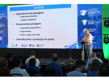 Em parceria inédita com a Epagri, transcorreu dia 08 de novembro durante o 12º SBSBL, o 1º Simpósio Catarinense de Produção de Leite à Base de Pasto. A primeira palestra foi com Sila Carneiro da Silva (ESALQ/UPS) sobre otimização dessa modalidade de alimentação. Sila enfatizou que o pastejo é a ‘colheita’ da planta pelo animal e, para isso, é necessário entender o ciclo vegetativo das plantas, “o que facilita conhecer o volume consumido por animal que, efetivamente, entra no trato digestivo e descobrir as perdas do processo”.